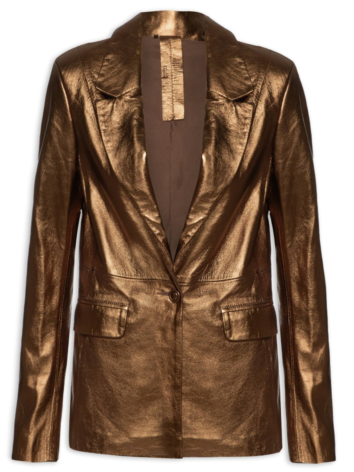 Blazer Feminino De Couro Oversized Metalizado, Animale.