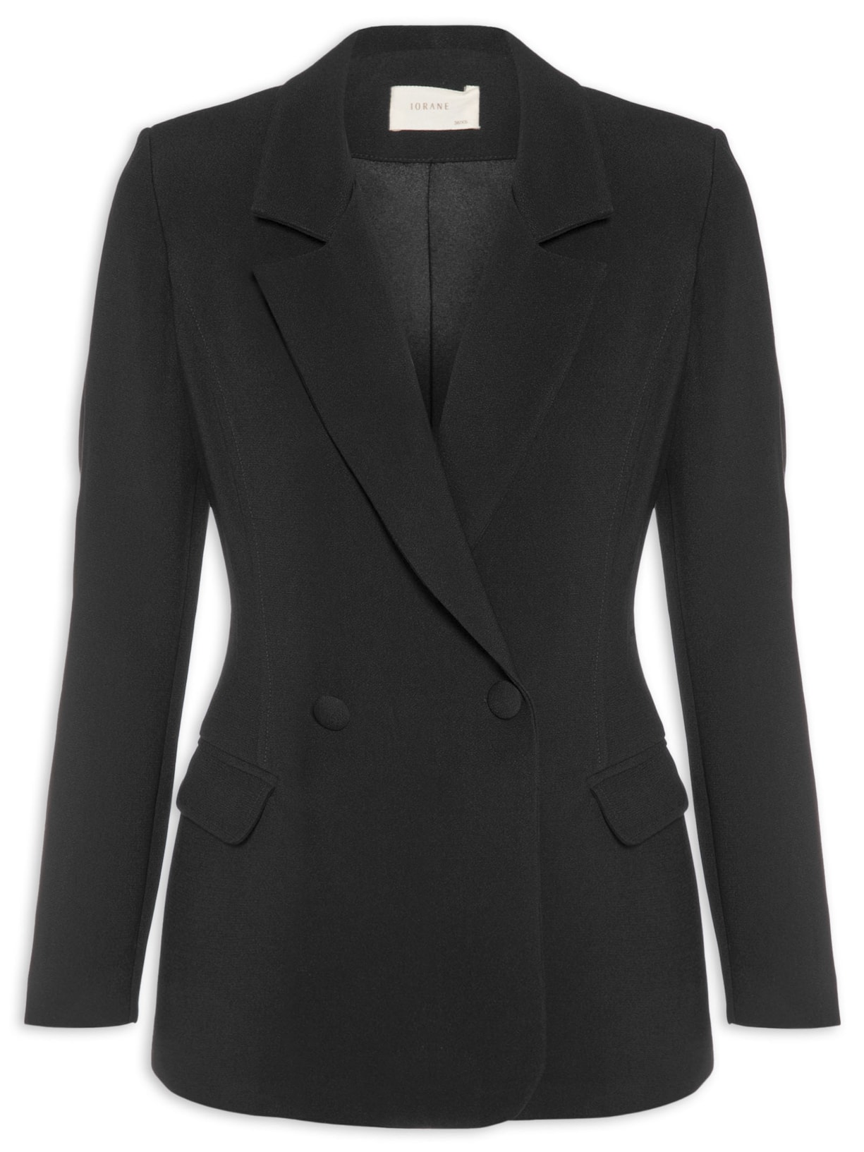 O blazer preto é perfeito para um look elegante e versátil. Aposte no modelo Iorane ao lado de um broche e combinado com uma calça lisa e sandálias.