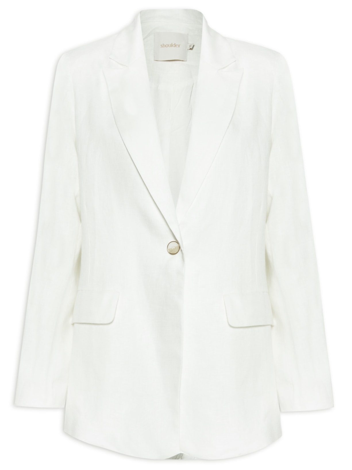 A alfaiataria se renova para o verão, trazendo shapes soltos, modelagens diferentes e tecidos. Aposte neste blazer de linho da Shoulder com uma calça, sandália de salto, colar e bolsa clutch.