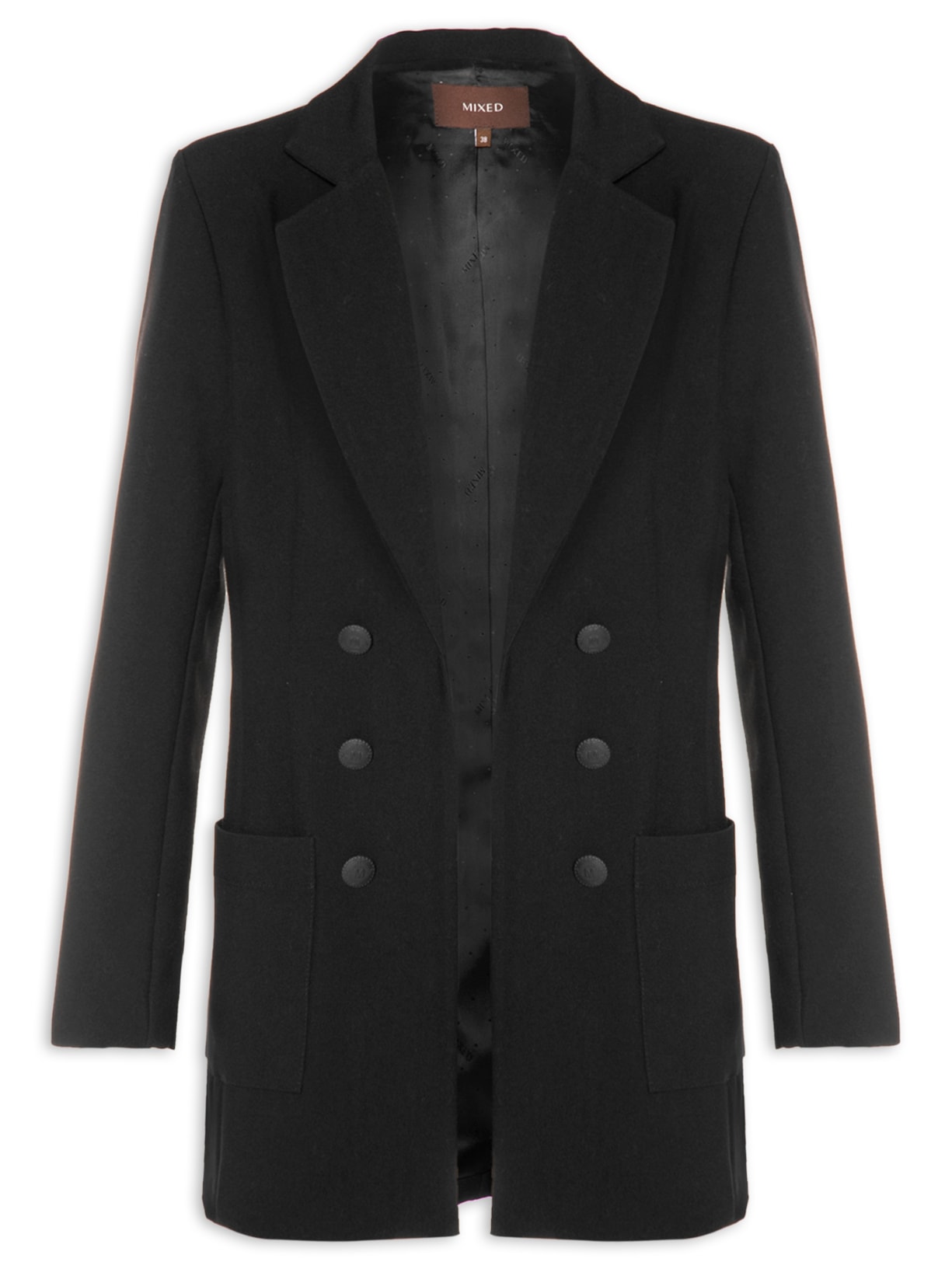 Para obter um visual sofisticado e marcante, aposte no blazer Mixed preto ao lado de uma blusa branca básica, calças cropped escura, sandálias flat e brincos para arrematar. O resultado é brilhante!
