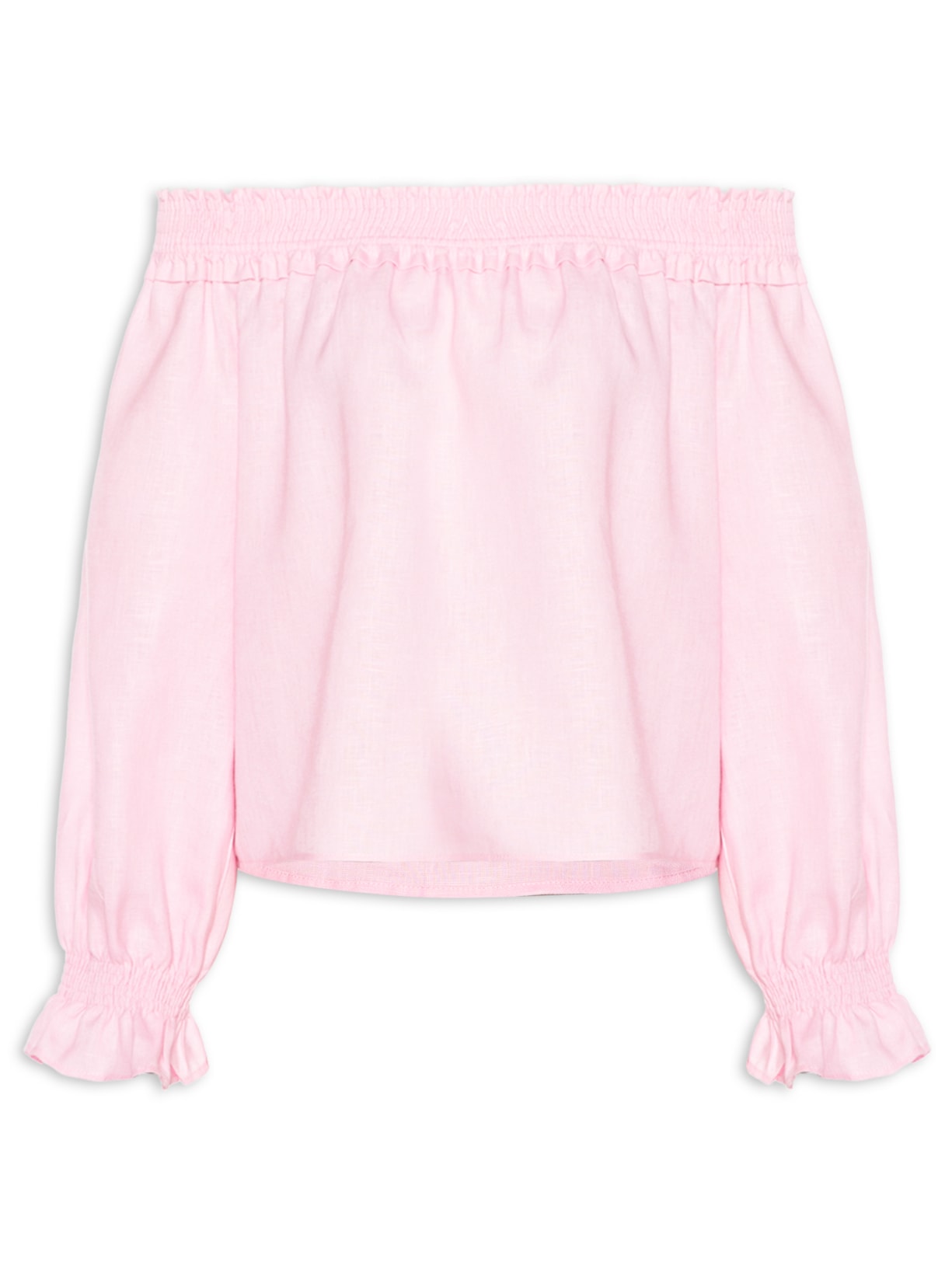 A blusa rosa é confeccionada por linho sem elasticidade. A peça solta ao corpo de modelo ombro a ombro possui decote reto, mangas longas, tag da marca metalizada aplicada na parte posterior e lastex aplicado no decote e nos punhos.