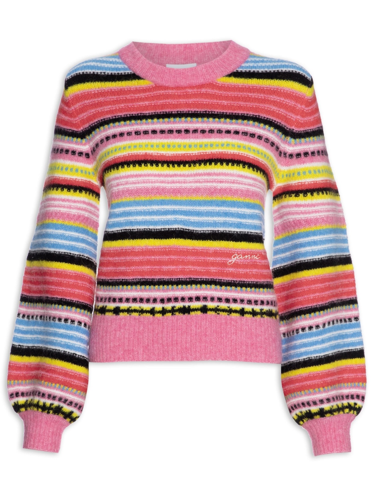 Blusa Feminina Soft Wool Stripe O-Neck, Ganni.