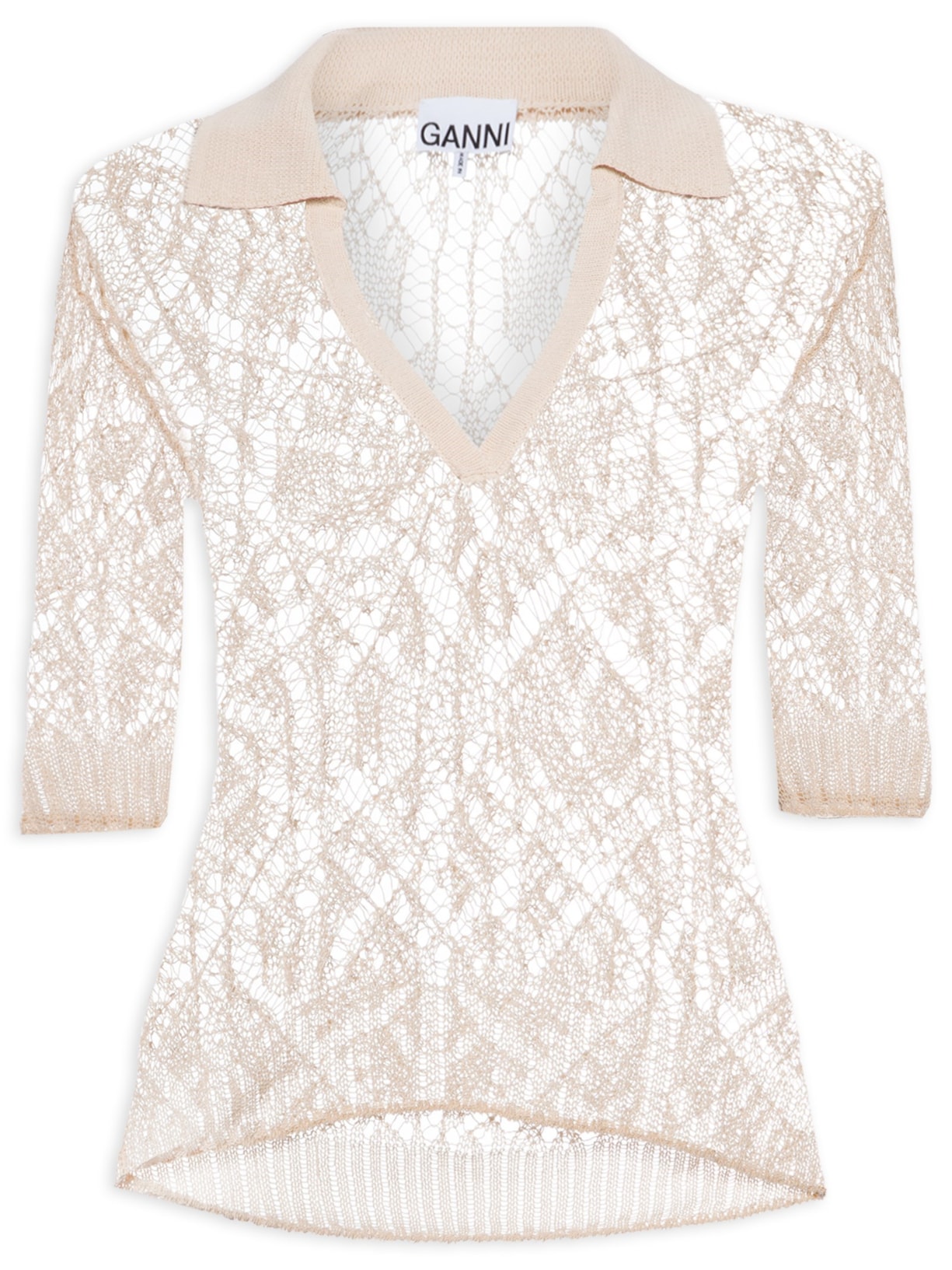Blusa Feminina Thin Cotton Lace Short Sleeve Polo, Ganni.
