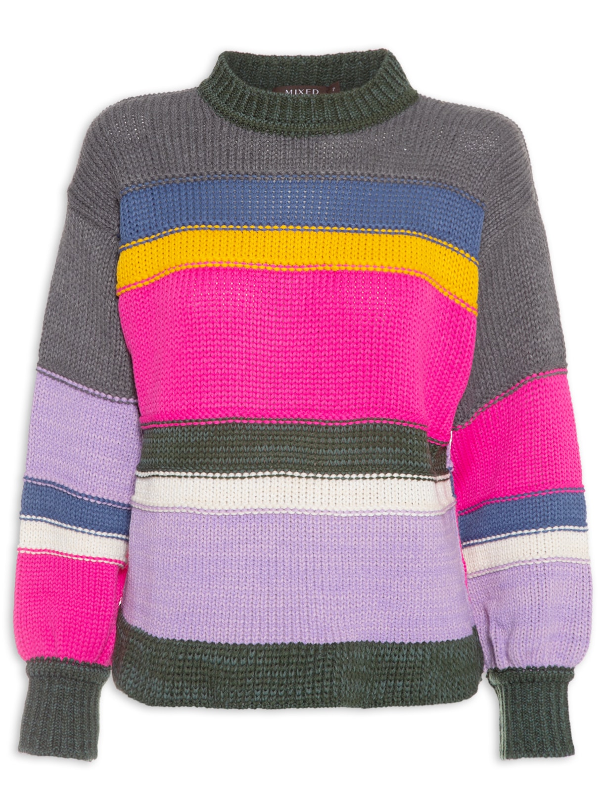 Para o dia a dia, conforto é essencial, e em temperaturas amenas, a blusa de tricot é a escolha certa! Aposte neste modelo da Mixed ao lado de uma saia midi rosa, cinto, brincos e bota de modelo coturno para finalizar.