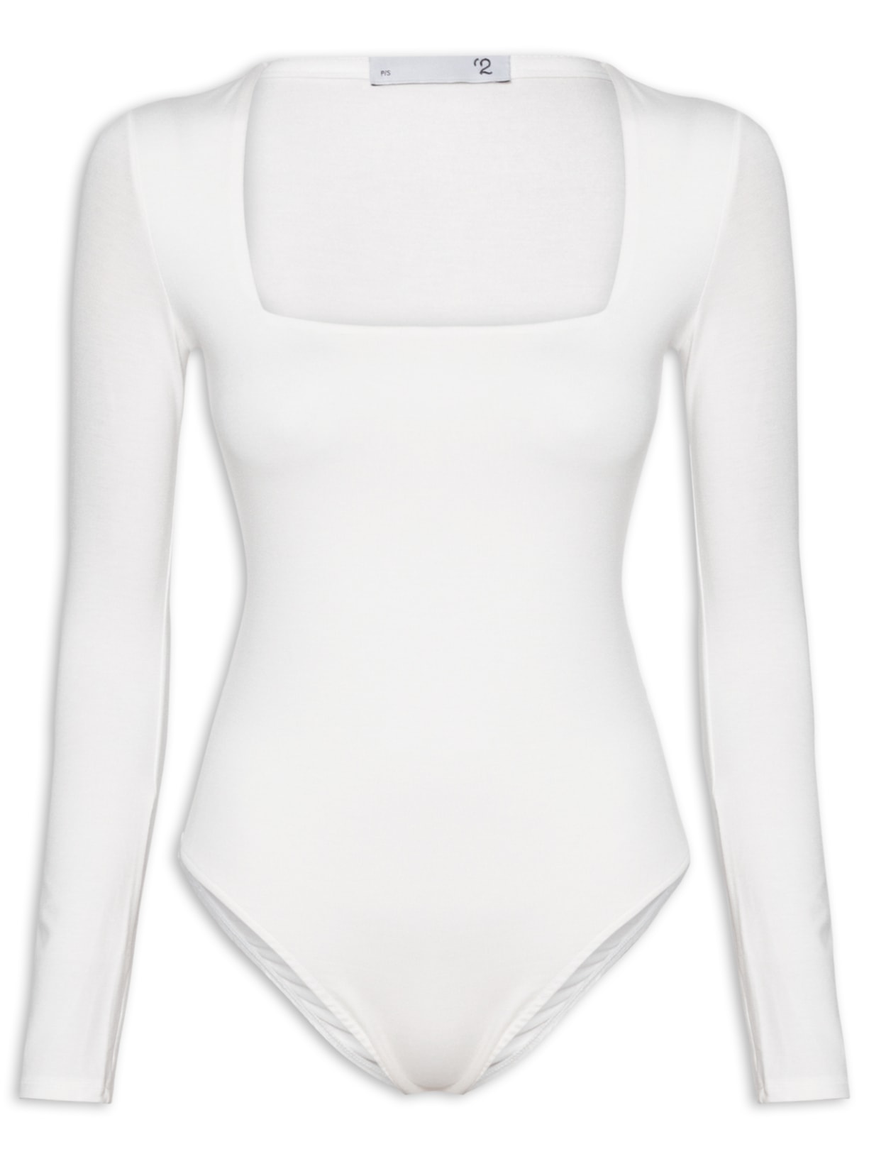 Body Em Malha Manga Longa E Decote Quadrado, '2Essential.