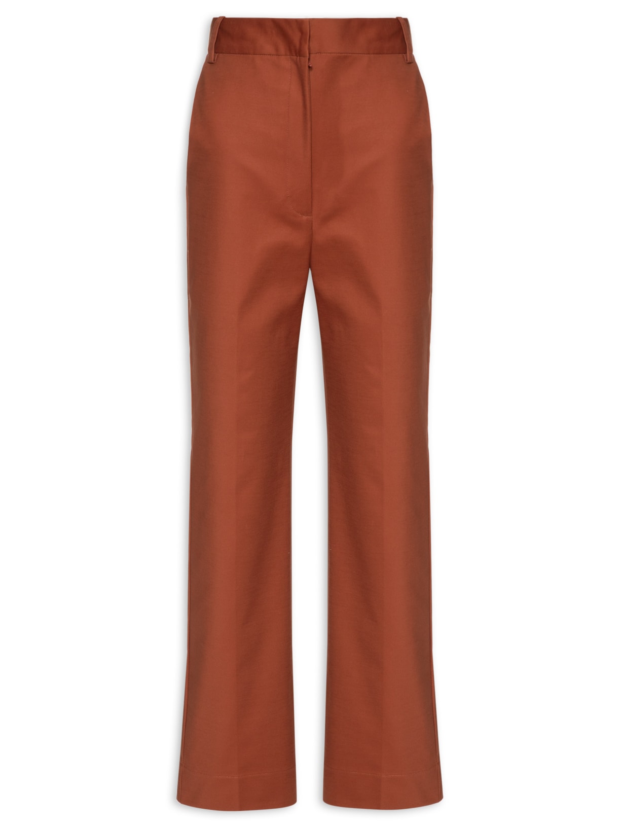 Do bege ao marrom, as cores sóbrias são chiques e atemporais e tem tudo para substituir o preto no seu guarda-roupa. Aposte em um look muito atual com esta calça Andrea Marques combinada com uma blusa de mesma cor, brincos de modelo argola, bolsa preta e sandálias para finalizar a composição.