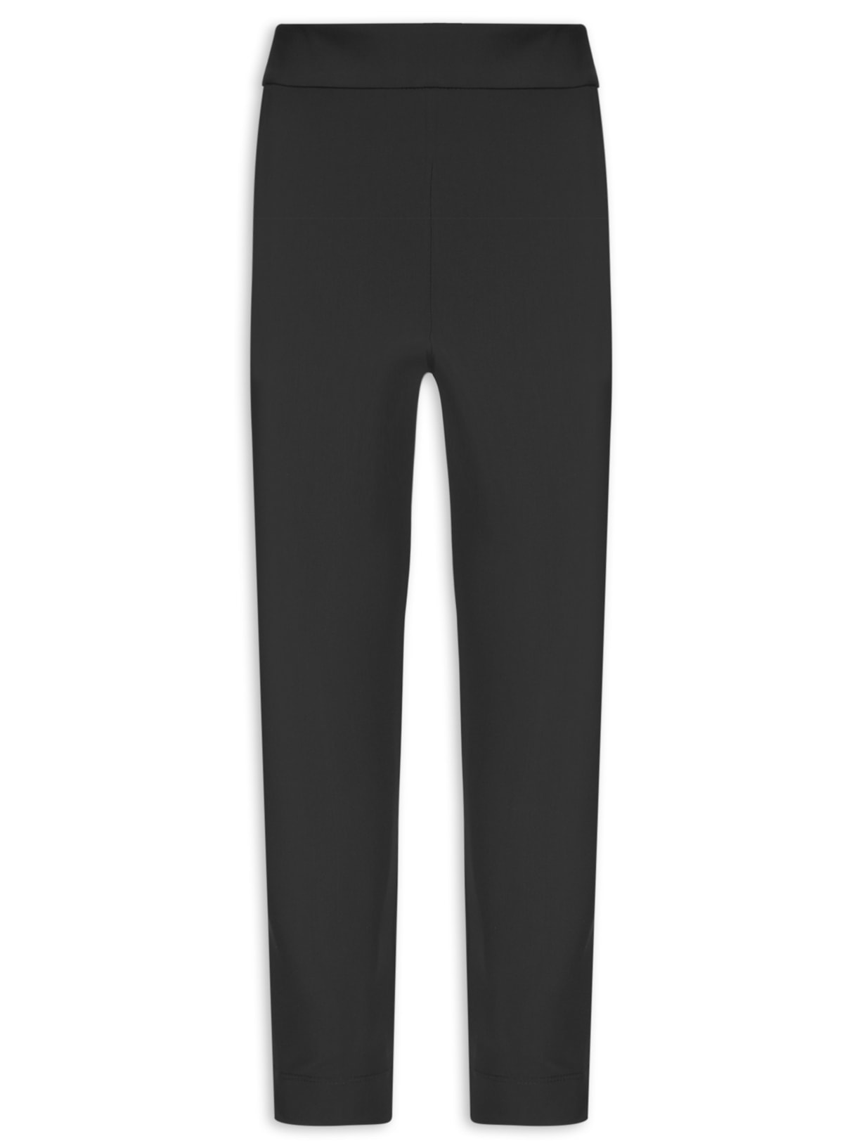 A calça preta é confeccionada em malha encorpada de baixa elasticidade. A peça justa ao corpo de modelo capri possui cintura alta, cós com elástico embutido, fendas laterais e fechamento posterior em zíper invisível.