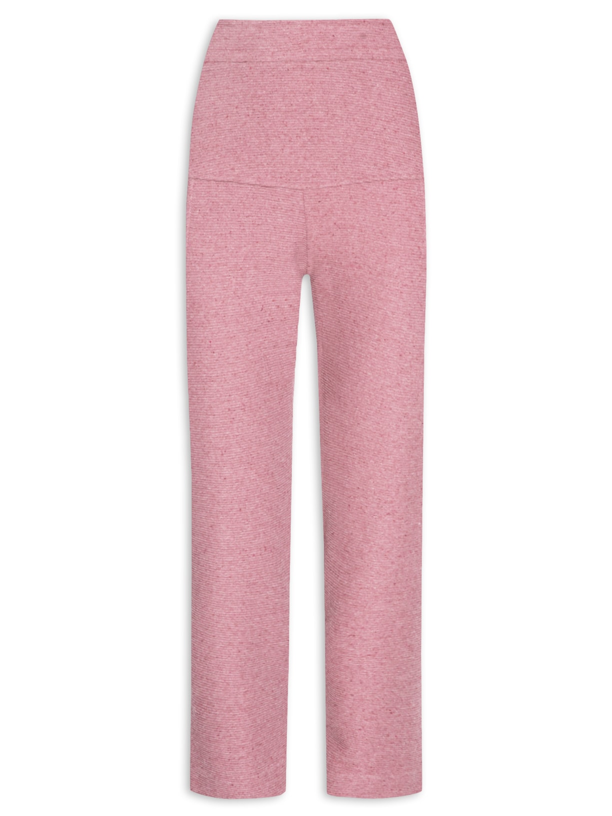 O retorno do rosa remete ao visual um ar mais romântico, leve e jovem. Combine a calça da Le Lis com a blusa, sandália de bico fino, bolsa de mão e brincos de argola.