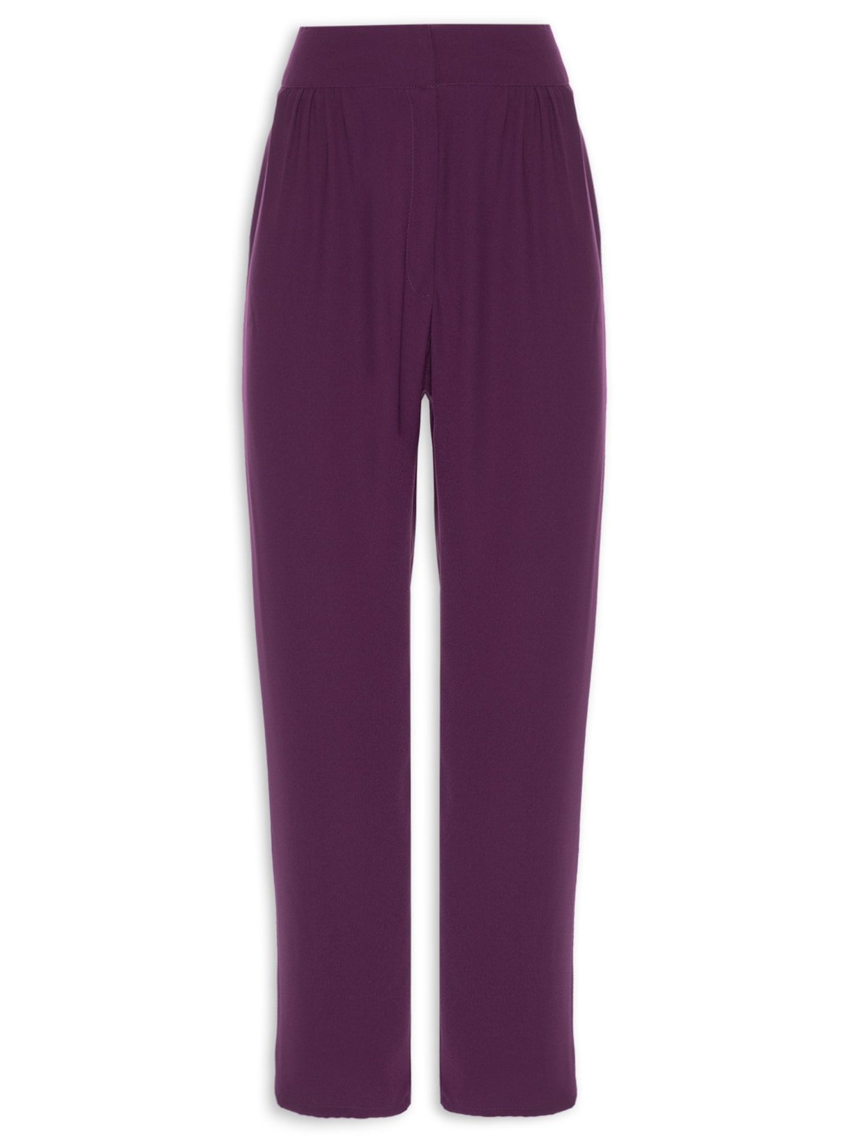 O roxo é a cor mais quente desta estação! Aposte nesta calça Ray ao lado de blusa verde, colar, brincos e sandália.