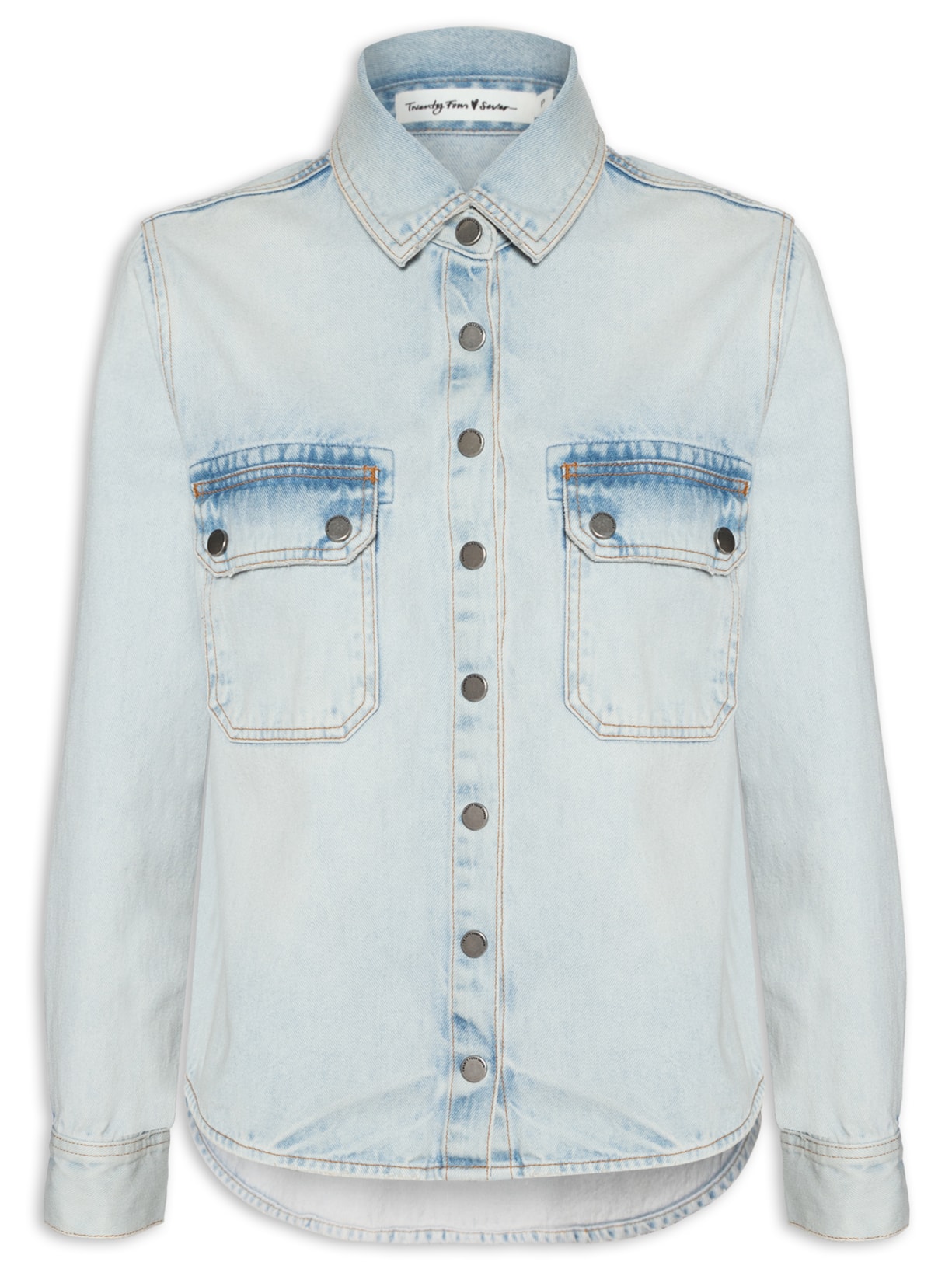 A camisa jeans é uma peça atemporal e traz um ar descontraído na produção. Exalte seu estilo com o modelo Twenty Four Seven combinado com uma calça jeans, cinto off white, regata lisa, brincos e sandálias para finalizar o look.
