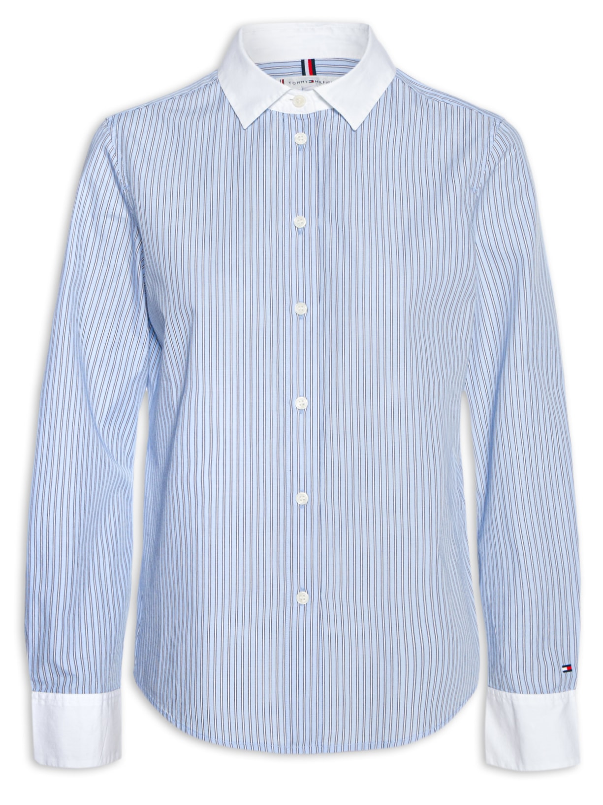 Camisa Feminina Ivy Stripe Contrast Reg Shirt, Tommy Hilfiger.