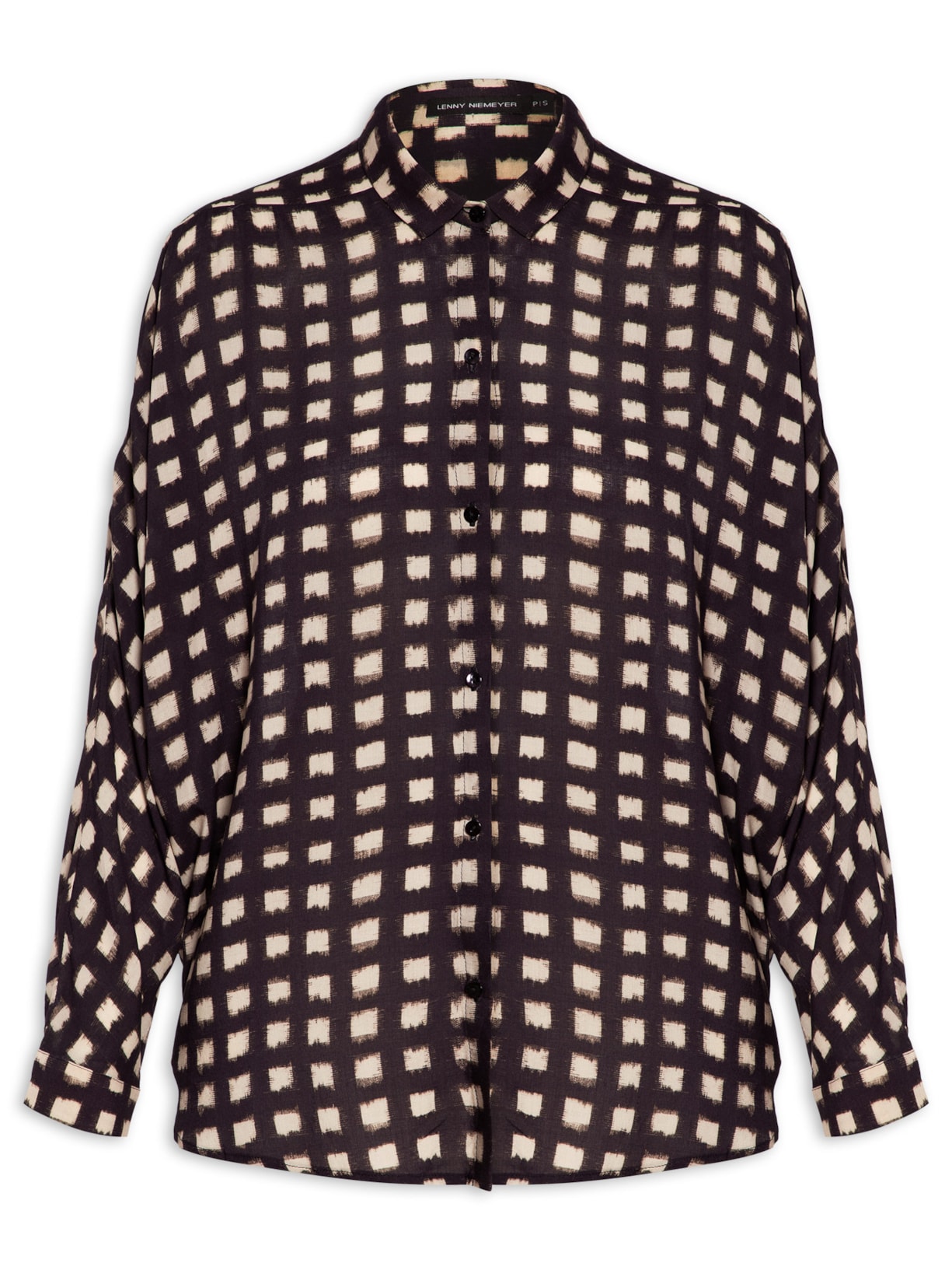 Para tirar a camisa do lugar comum, aposte nesta versão estampada de Lenny Niemeyer e crie um charme extra à produção. Sugerimos esta peça acompanhada de um top de biquíni, calça com a mesma padronagem e sandálias de tiras para finalizar com conforto.