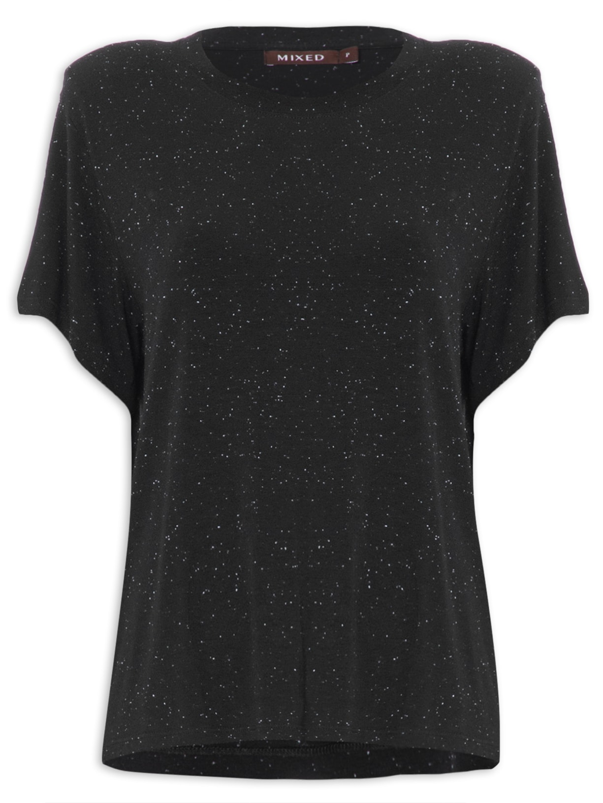 A camiseta preta de Mixed é uma peça curinga tanto em composições casuais até trajes formais. Use a sua com uma calça preta justa, sapatilhas metalizadas, bolsa de mão e brincos alongados!