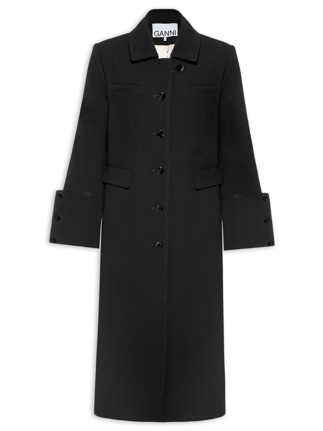 Casaco Feminino Bonded Crepe Coat, Ganni.