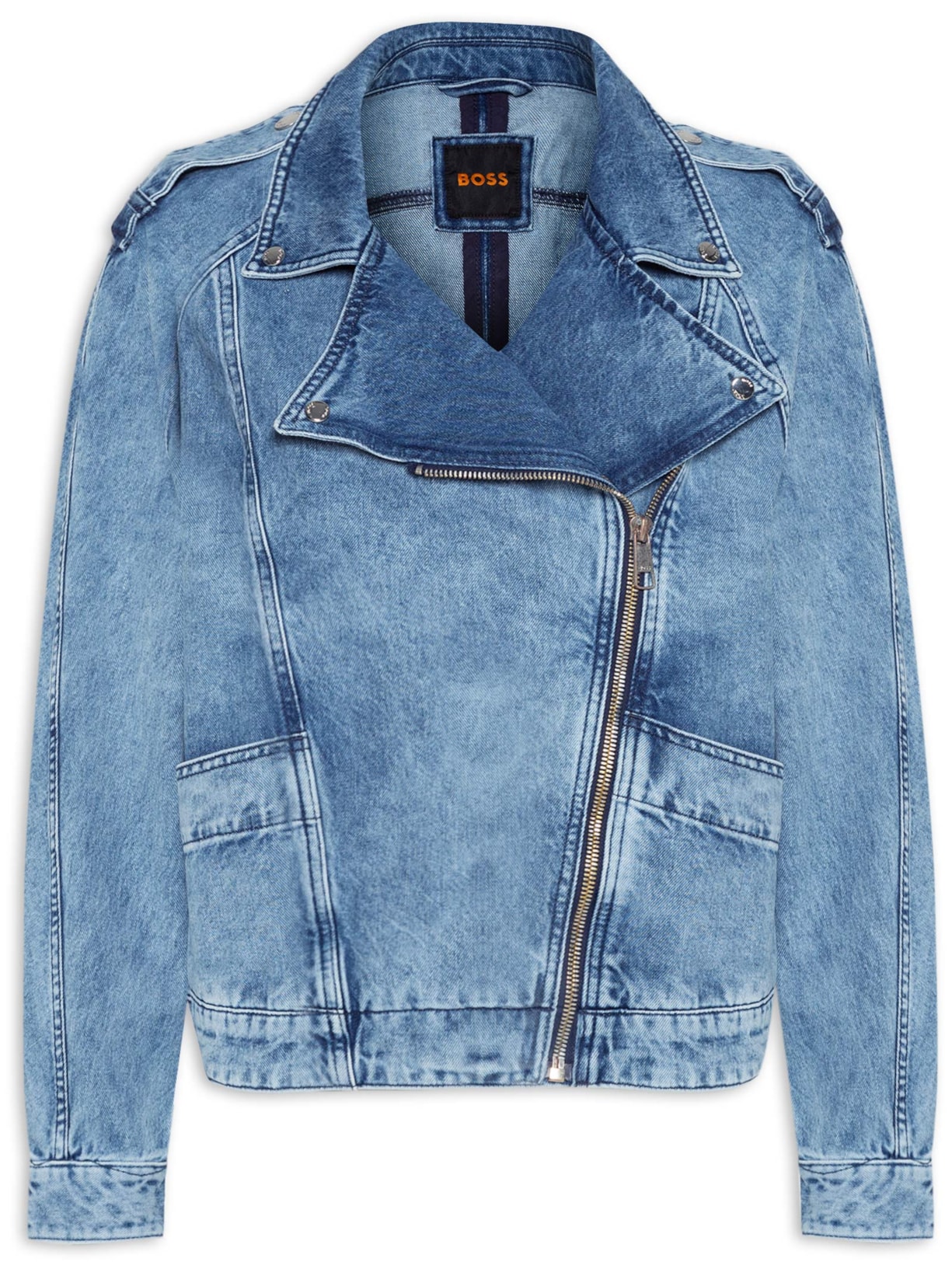 Jaqueta Feminina Denim Biker Jacket, Boss Woman.
