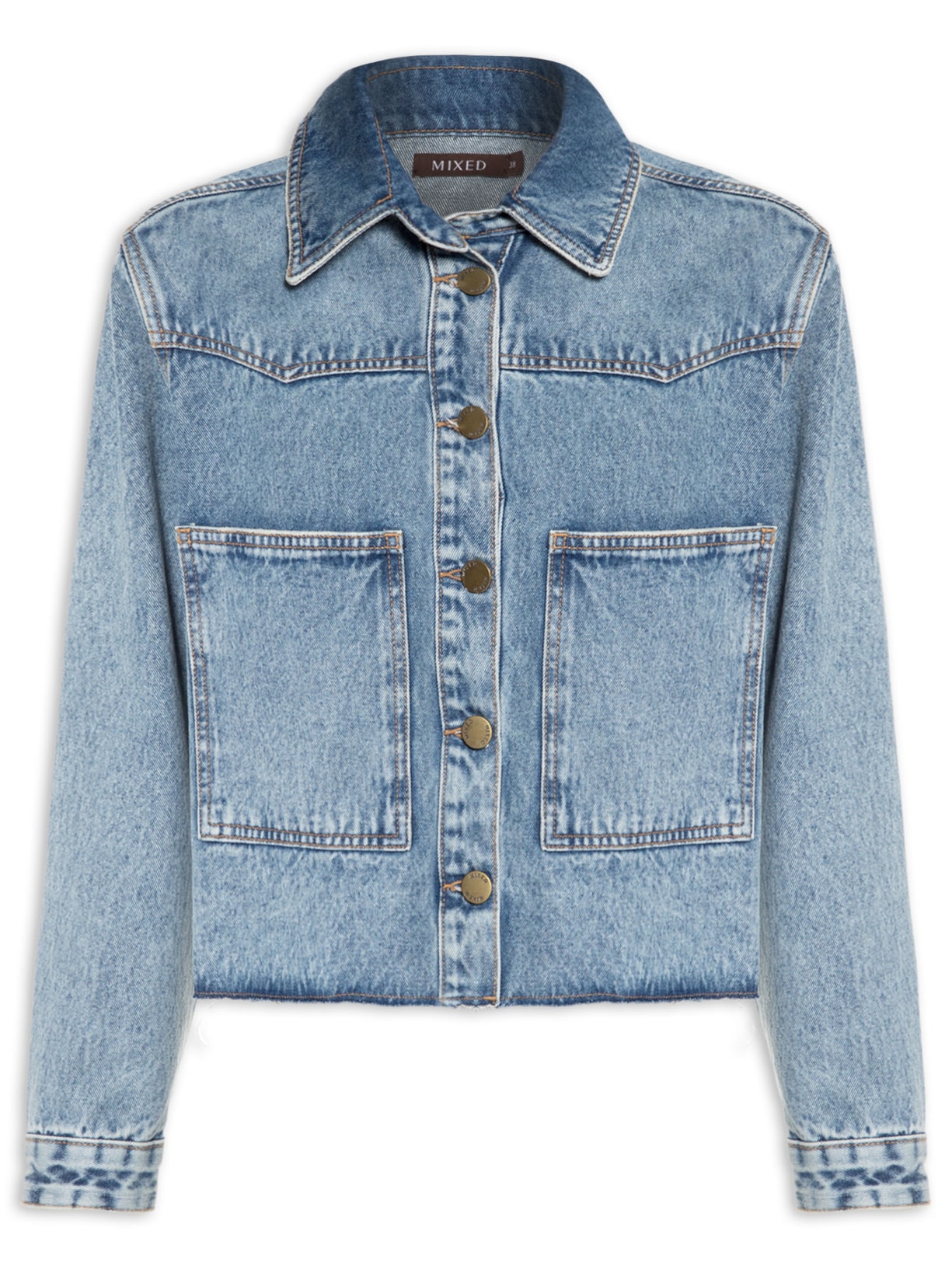 A jaqueta jeans é uma peça atemporal e curinga no closet da mulher moderna. Aposte no modelo Mixed sobreposta a uma blusa lisa, brincos, calça jeans, cinto corrente e sapato mocassim para finalizar.