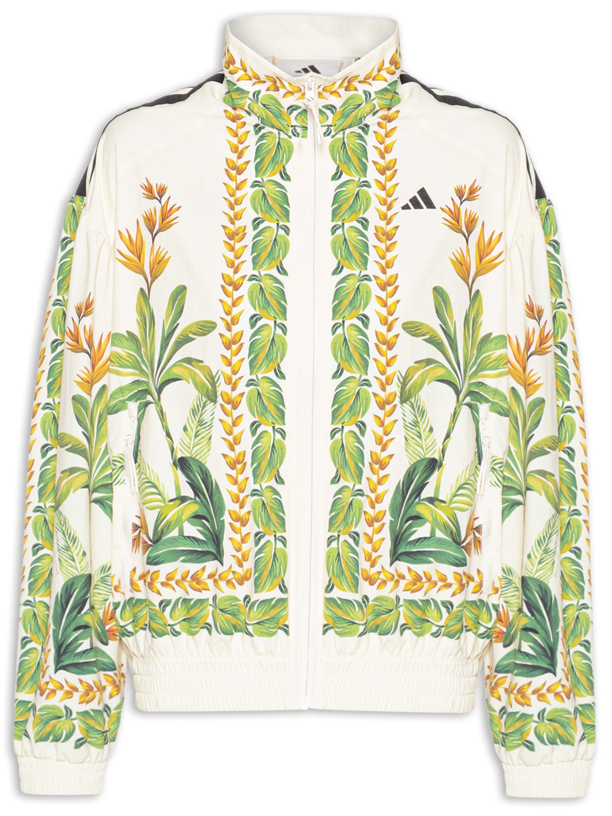 As jaquetas estampadas estão super na moda. Combine este modelo Adidas + Farm com uma bermuda de conjunto, brincos e tenis para finalizar.