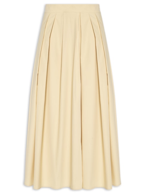 - Saias midi: modelagens retas ou evasês discretos, em tecidos estruturados ou leves, que valorizam o movimento. Preferencialmente em tons neutros e com acabamento clássico.