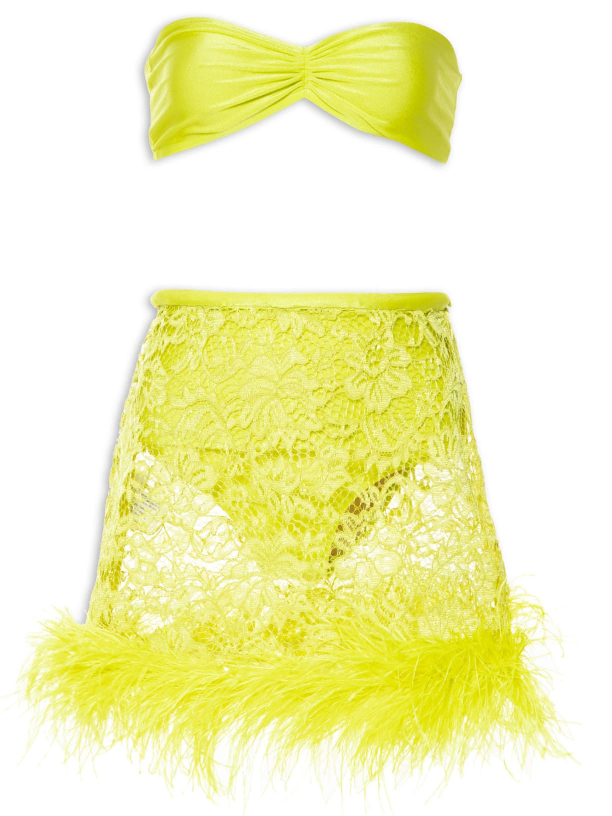 O verde tom de limão chega com leveza para vibrar nesta temporada. É impossível ignorar essa tendência que já é hit entre as mais fashionistas. Aposte nesta mini saia Adriana Degreas combinada com um top na mesma paleta, colares delicados e sandálias metalizadas para finalizar a composição.