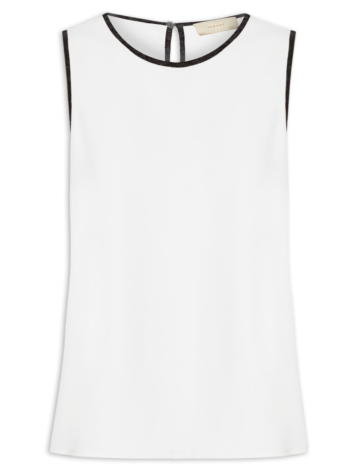 O black & white é uma aposta perfeita para uma produção elegante com um toque minimalista. Aposte nesta regata Iorane combinada com uma calça preta reta, cinto de couro, brincos e sandálias de salto para finalizar o look.