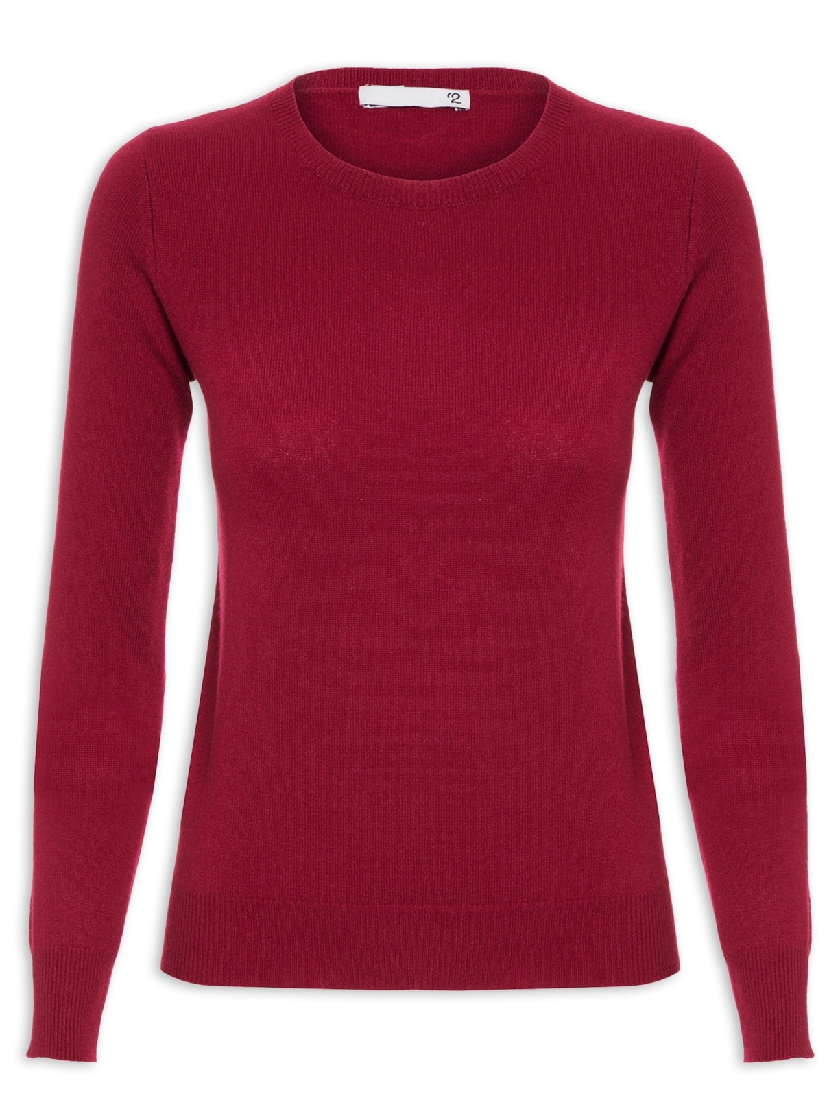 O sweater vermelho é confeccionado em cashmere. Esta peça de modelagem reta, possui gola arredondada, mangas longas e acabamento canelado.