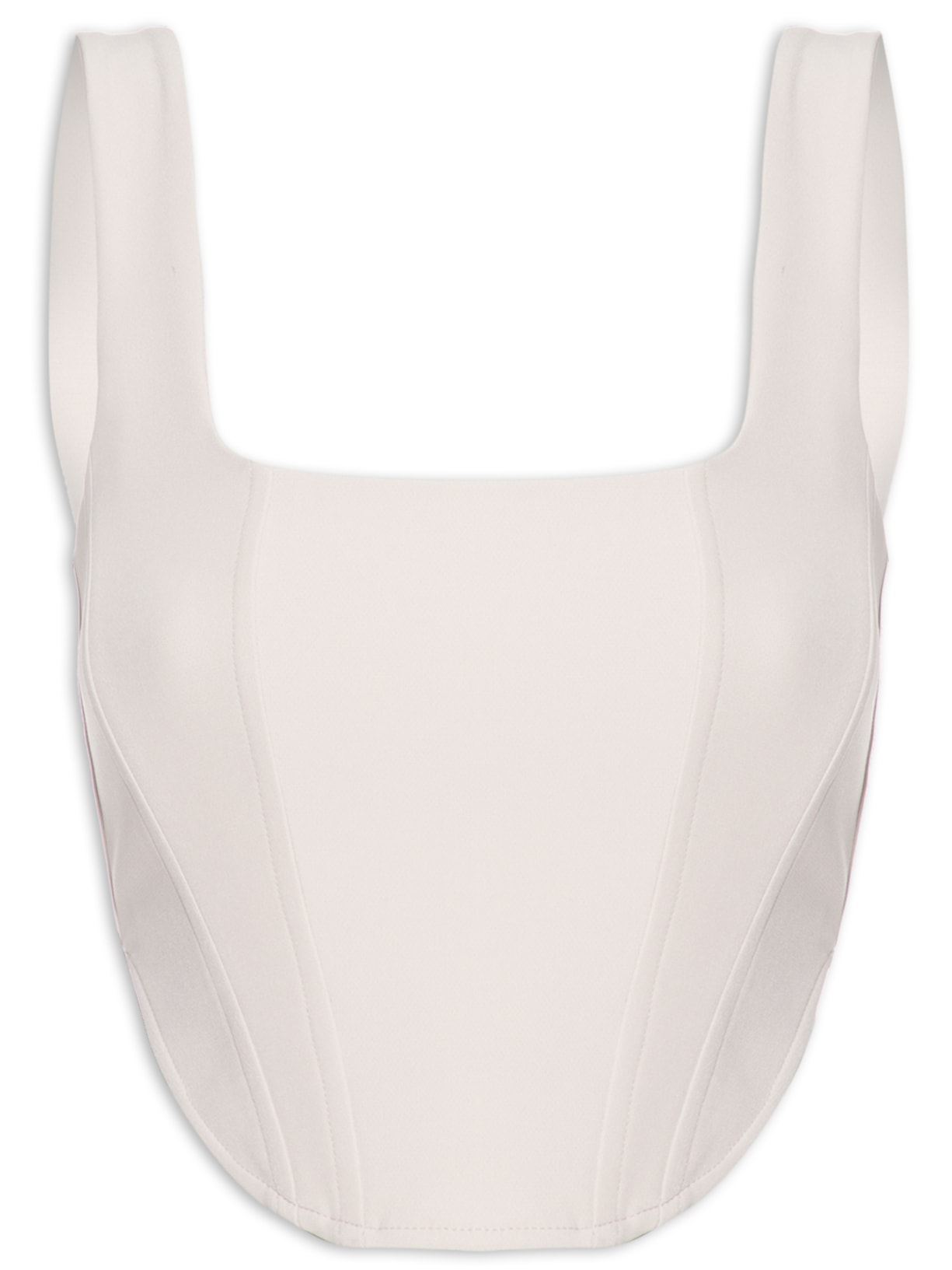 Do bege ao marrom, as cores sóbrias são chiques e atemporais e aparecem nesta temporada com força total para substituir o preto. Aposte neste top corset Nui Nui bege ao lado de uma saia curta, blazer, scarpin metalizado e brincos de pérolas para compor um visual monocromático no mood ton sur ton.