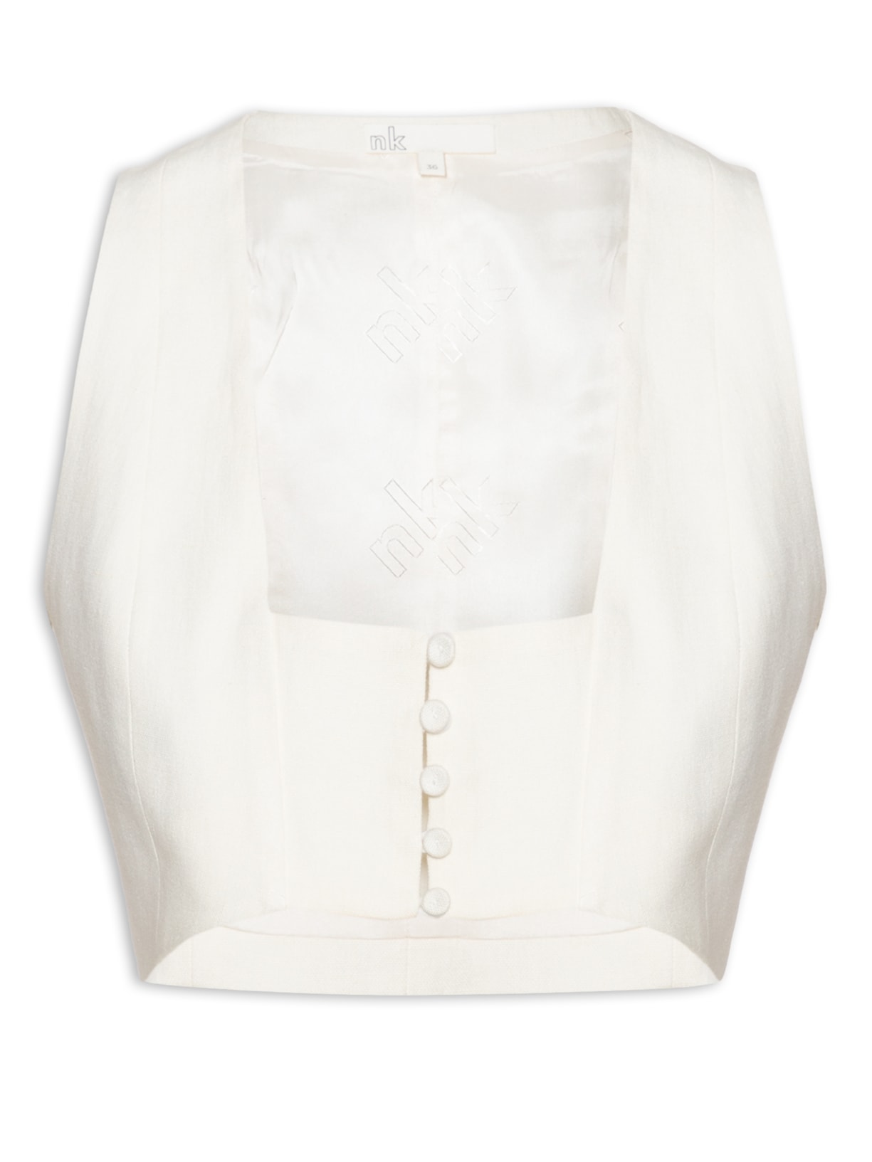 O linho é o tecido hit do momento e além de garantir um visual para lá de sofisticado é leve e super fresquinho perfeito para encarar os dias mais quentes. Combine este top Nk com uma calça da mesma cor, sandálias de salto bloco, brincos metalizados e bolsa pequena em paetês para um visual certeiro.