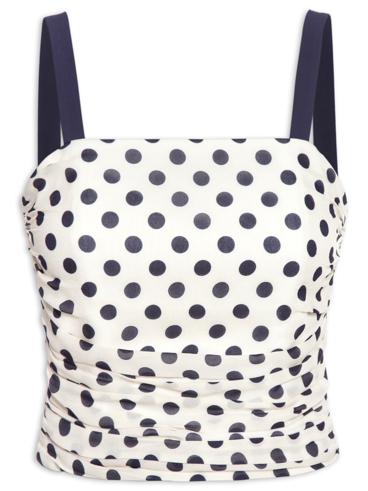 O top off white é confeccionada em crepe. A peça possui decote reto, alças médias em cor contrastante, recorte posterior em lastex, recortes laterais com detalhe franzido, forro, shape justo, caimento reto e acabamento pespontado e fechamento posterior por zíper.