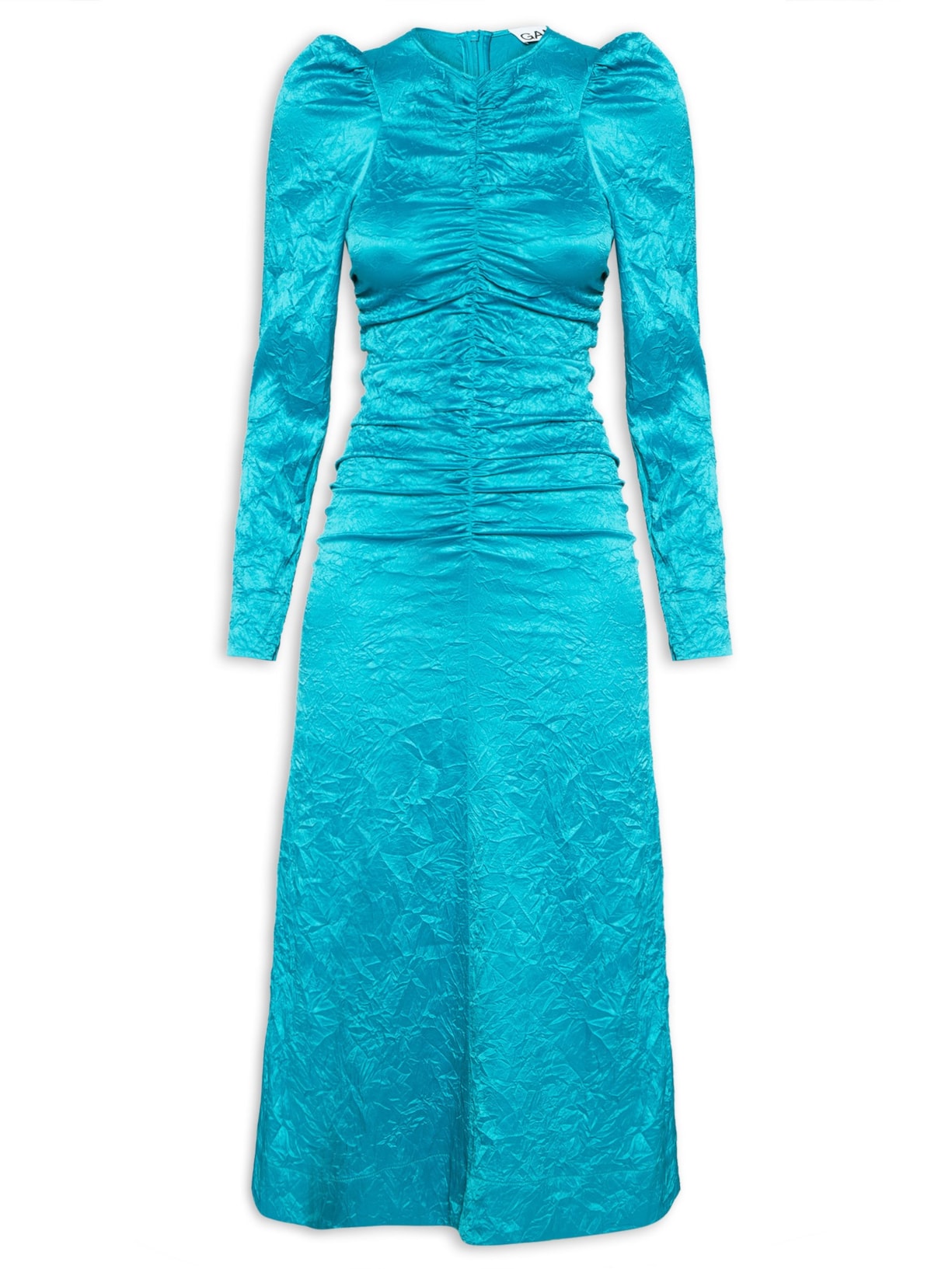 Vestido Crinkled Satin O-Neck Midi, Ganni.