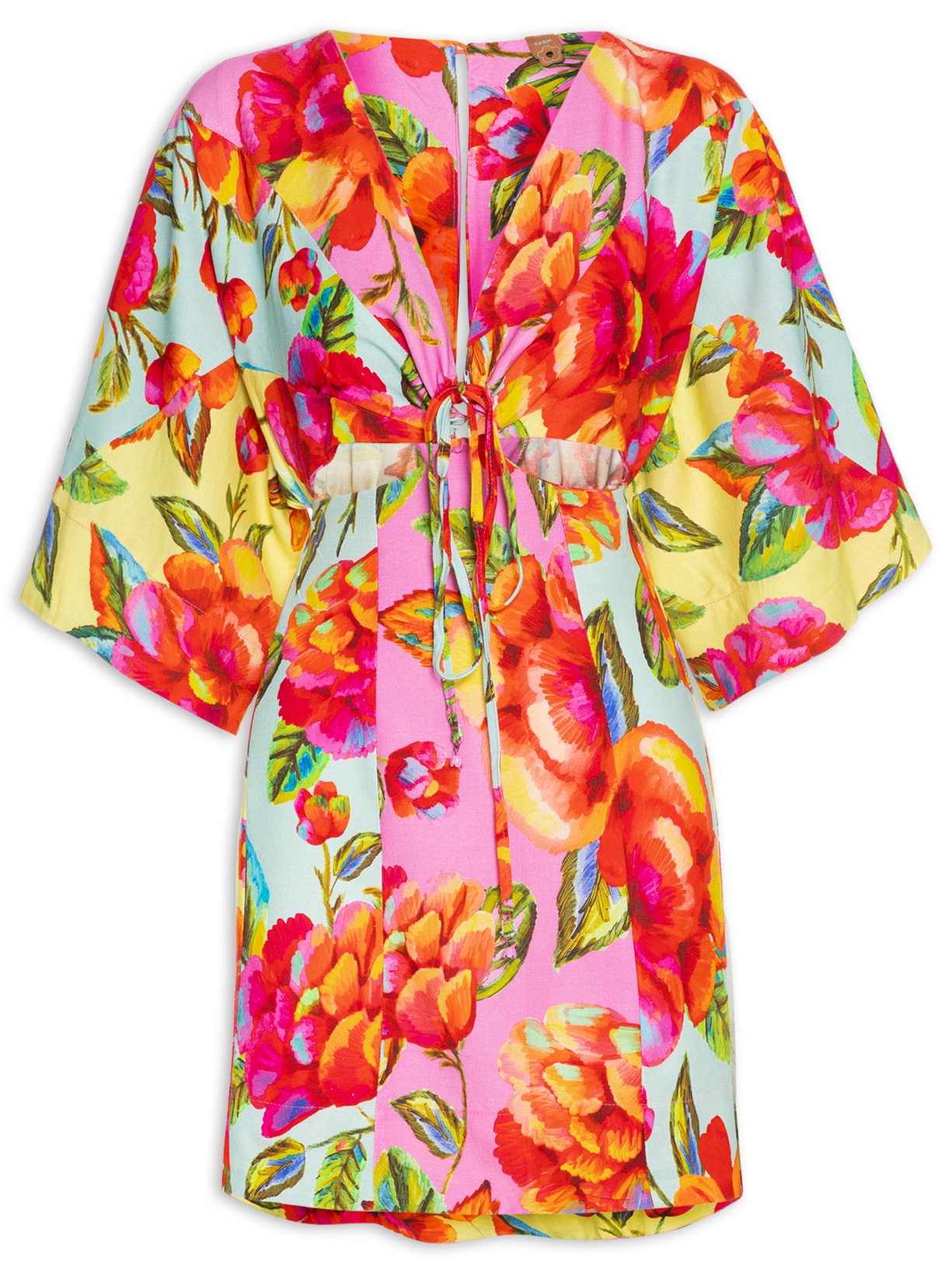 Vestido Curto Patch Flor Céu, Farm.