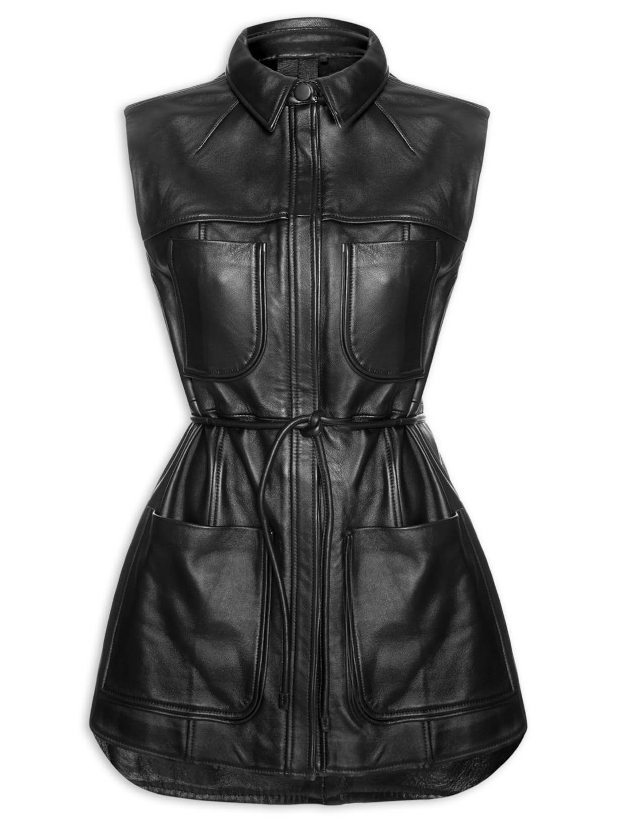 Vestido De Couro Curto Bolso Frontal Ama, Animale.