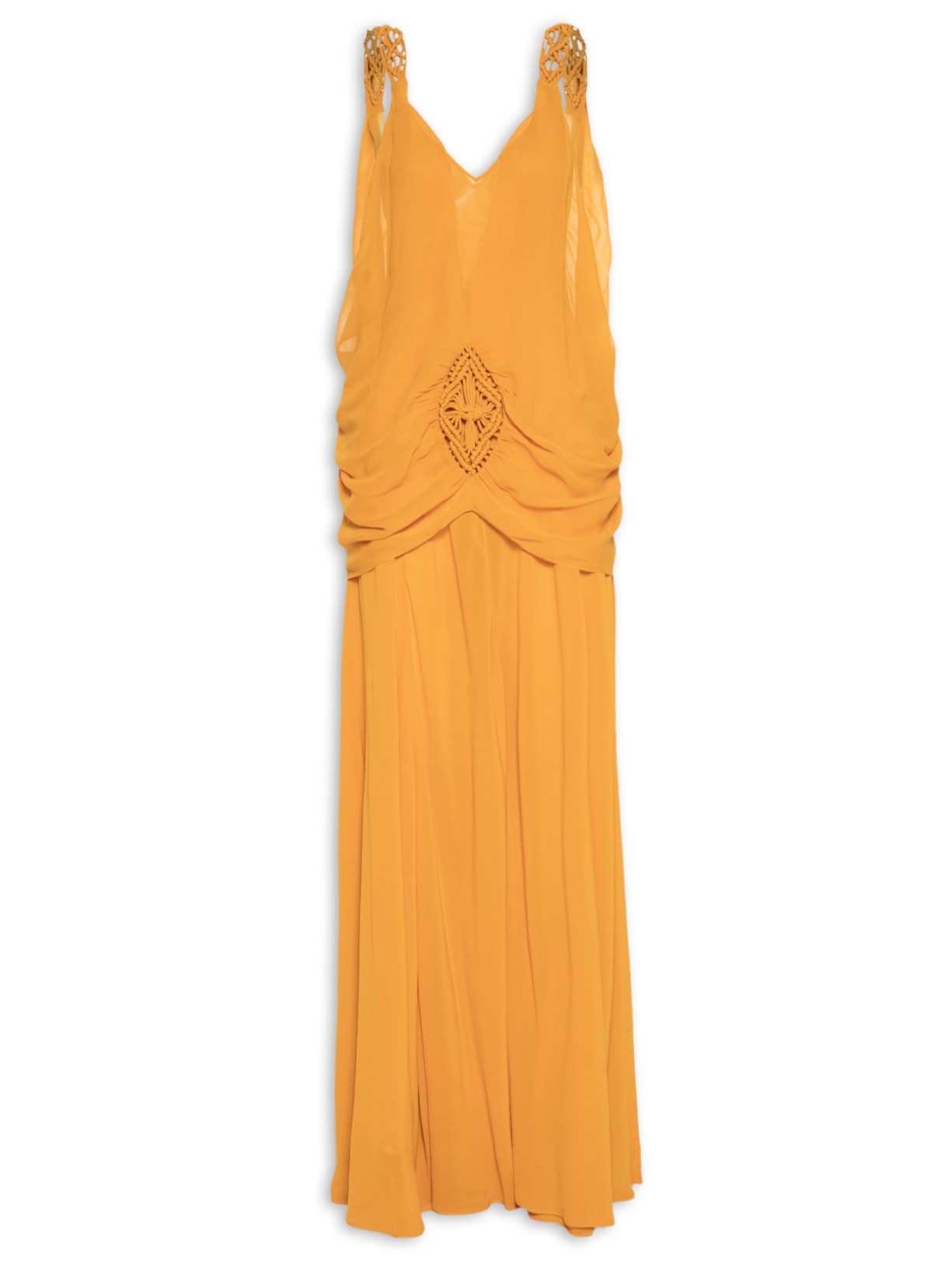 Vestido Longo Com Sobreposição E Macramê, Animale.